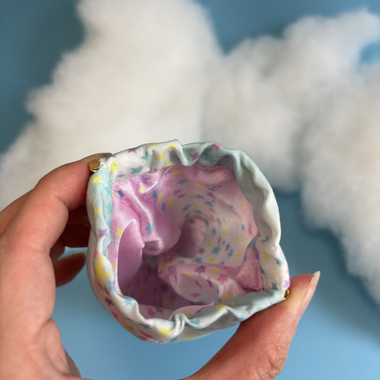 両脇を抑えるとパカっと開くタイプのポーチです。