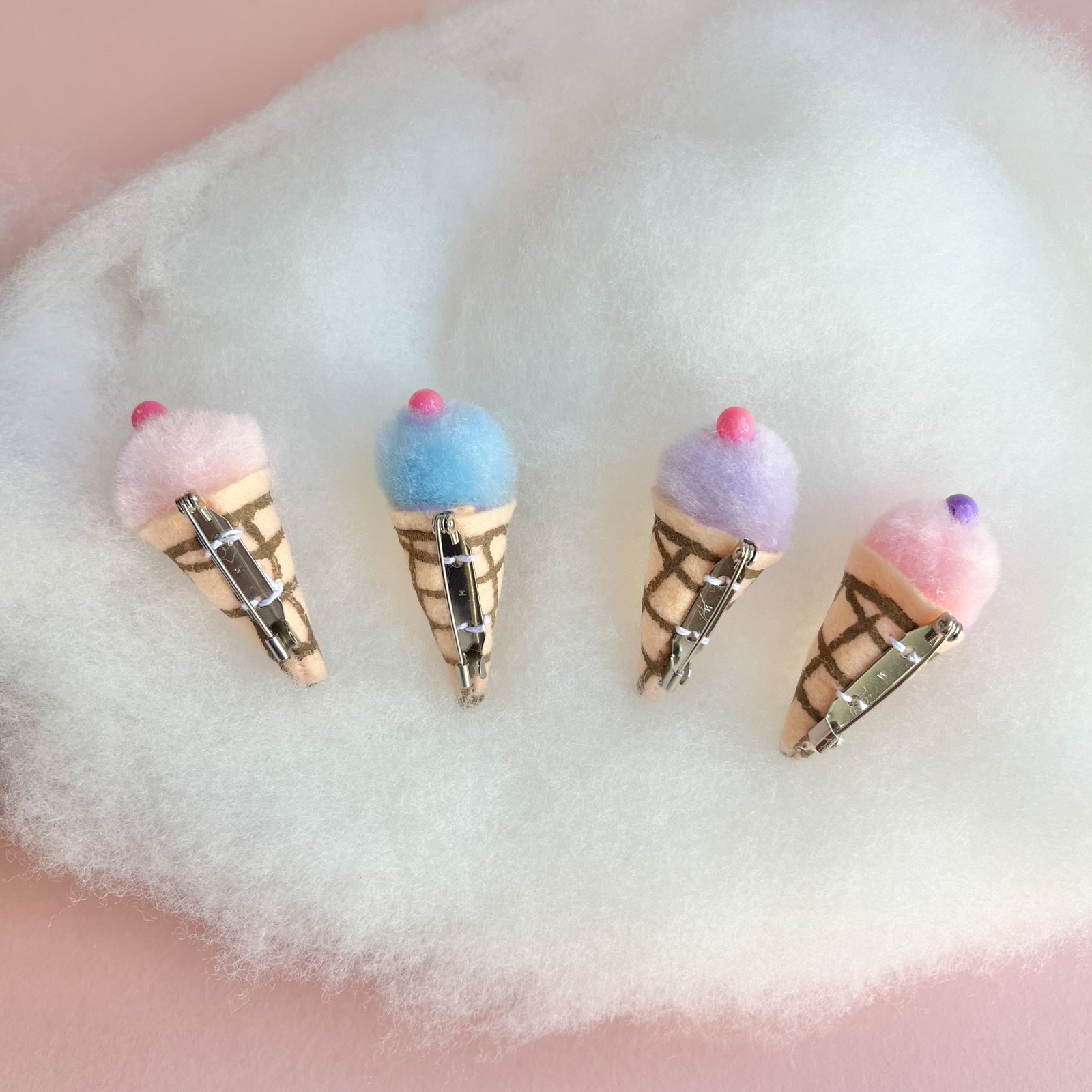ぬいぐるみに持たせるのにぴったりなサイズのアイスクリームのブローチです。