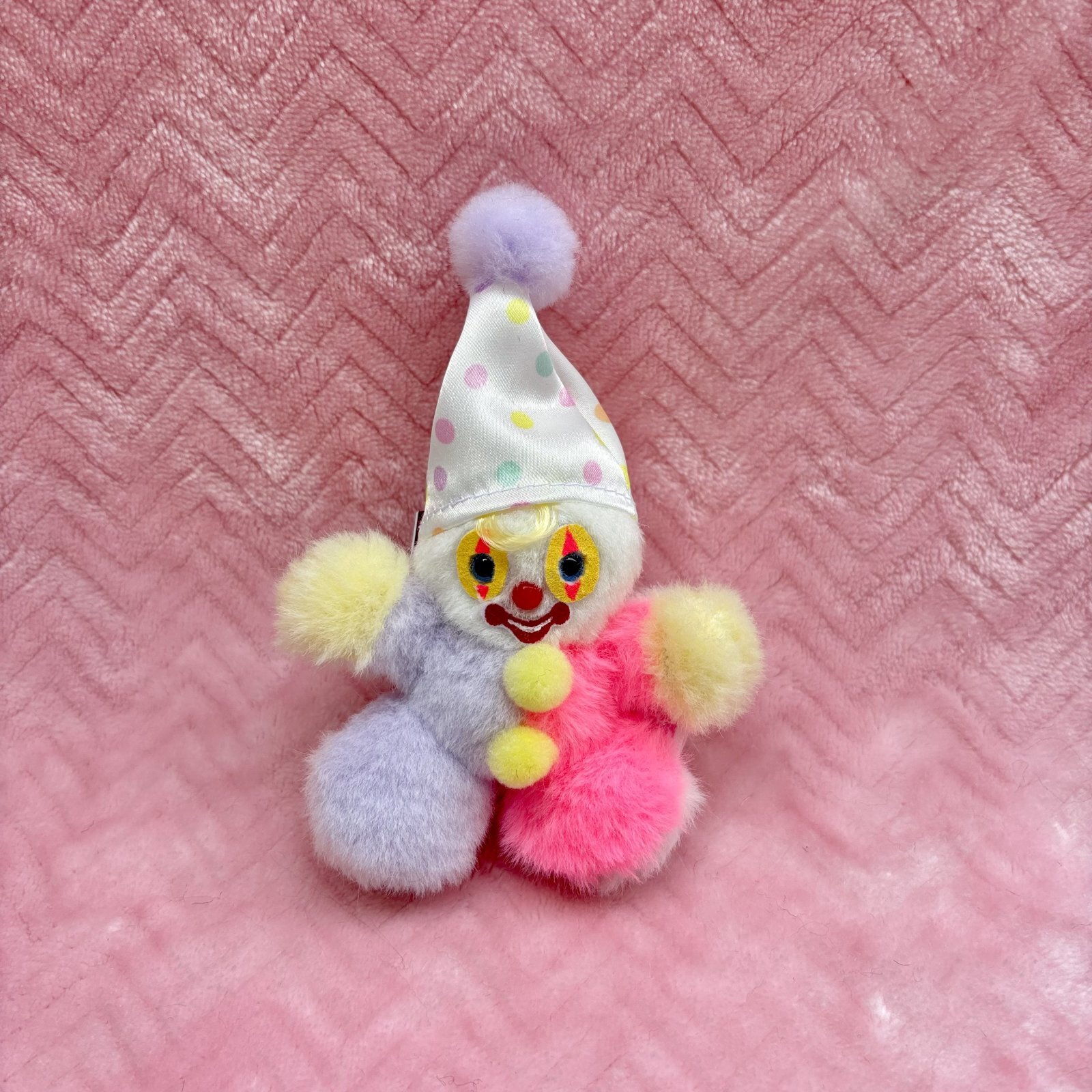 カラフルなかわいいピエロのぬいぐるみキーホルダーです。