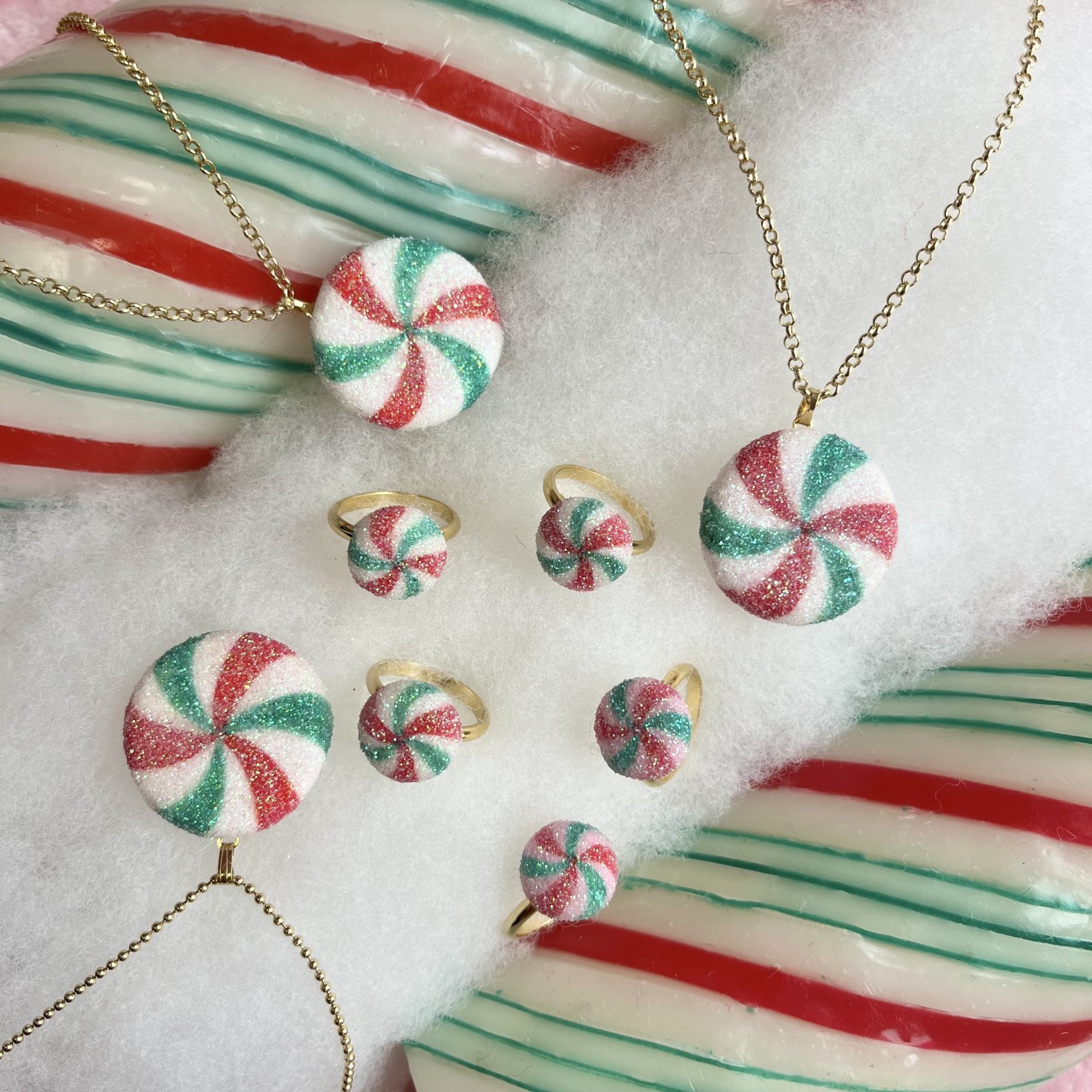 Mikinyのハンドペイントがかわいいペパーミントキャンディーのネックレスです。